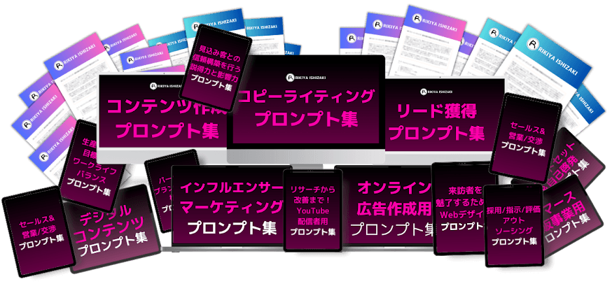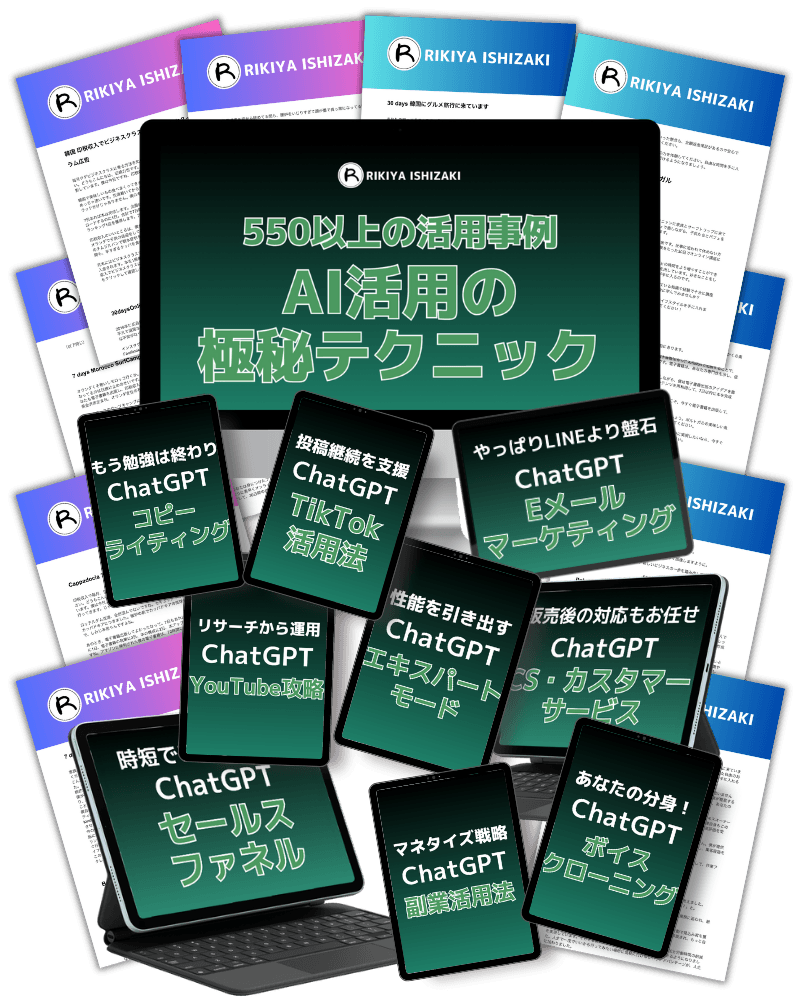 550種類以上のビジネス、生産性、創造性を加速させるChatGPTとAI活用の秘訣を学べます。