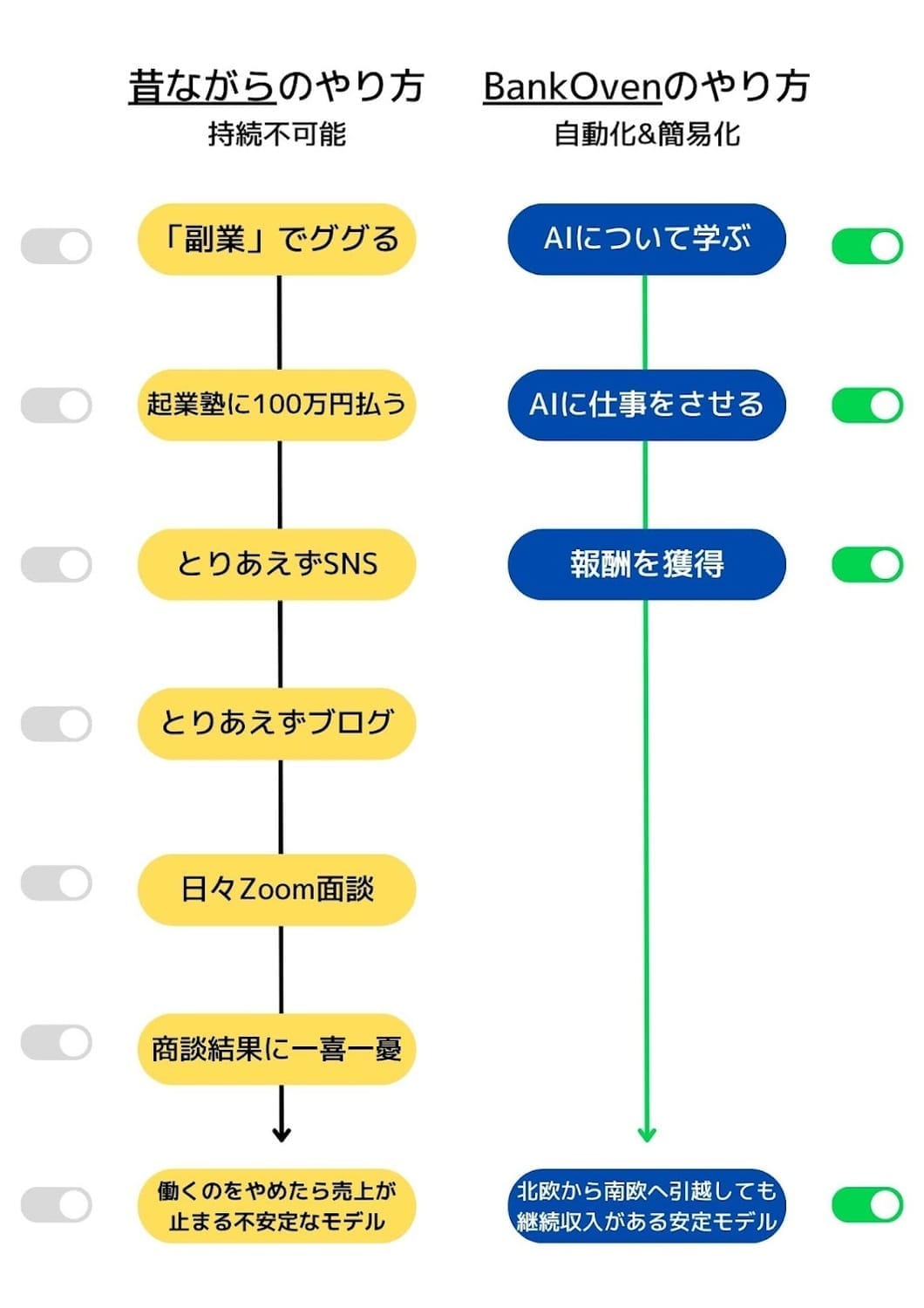 BankOven は、「AIを使ったネットビジネス」を学ぶための全く新しい教材であり、集客の悩みを今日止めるための最適解です。