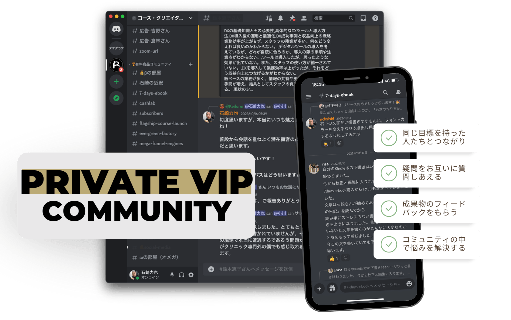 合計2時間の14本のビデオトレーニング、購入者専用のDiscordコミュニティが含まれます。Netflixのように続きから視聴できる受講システムを備えたメンバーエリアにすぐにアクセスできます。