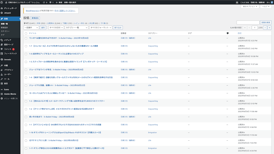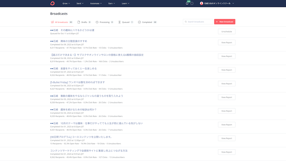 いしこんに参加してから、メルマガ執筆やアフィリエイトなど色々なことをやめてUdemyだけに集中しました。毎週、いしこんで石崎さんに進捗報告しなければならない。