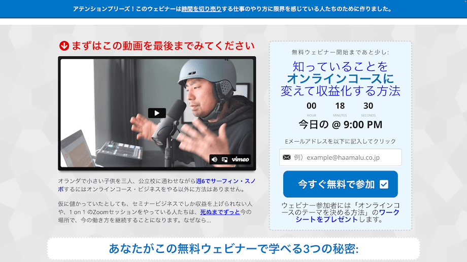 "あなたは集客を効率化しもっと多くのコースを販売する方法についてGoogleで検索し、オンラインコースを1億円すら販売したことない人のYouTube動画を見て逆に混乱してしまい1人で悩んでいませんか。"