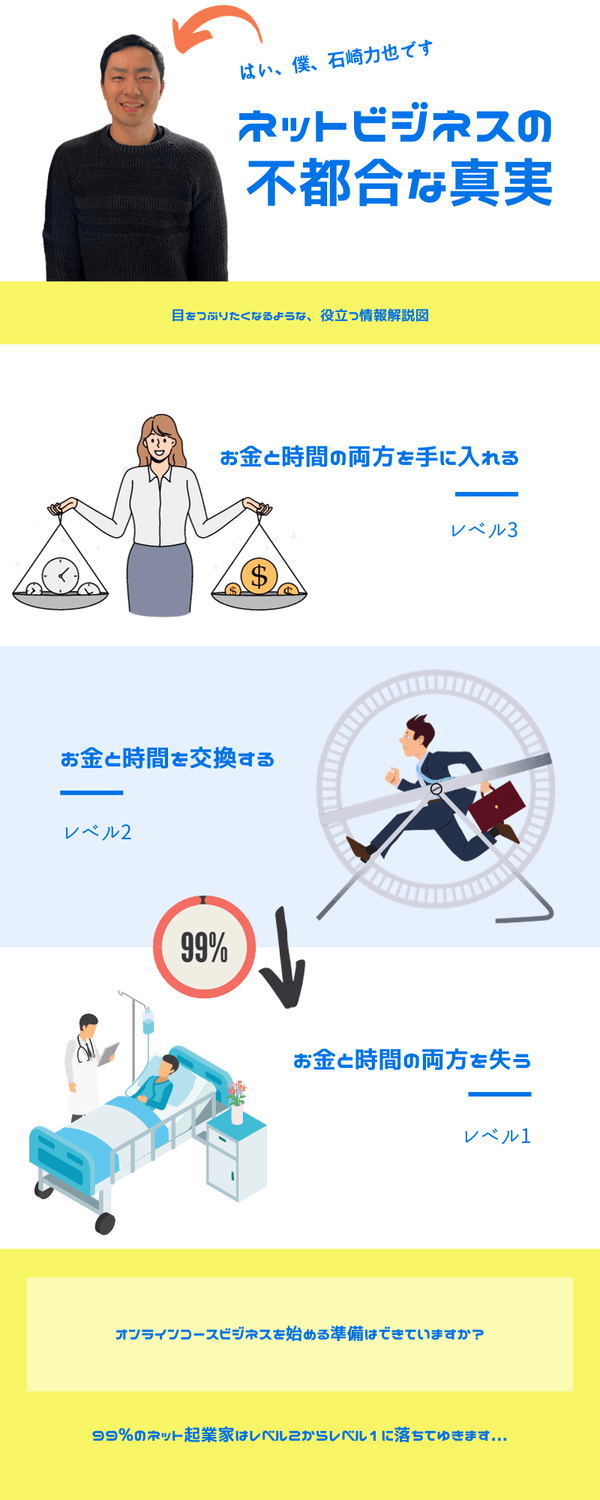 お金と時間の両方を手に入れたい。そう思ってネットビジネスを始めた方は多いはずです。でも思ったよりも収入は不安定だし来月の収入を考えると不安で作業する手を止められない。結句、自分の生命時間とお金を交換するような仕事になっている。まるでカンナで命を削るような働き方なので精神的にも身体的にもかなり消耗している。・・・こんな人多いです。