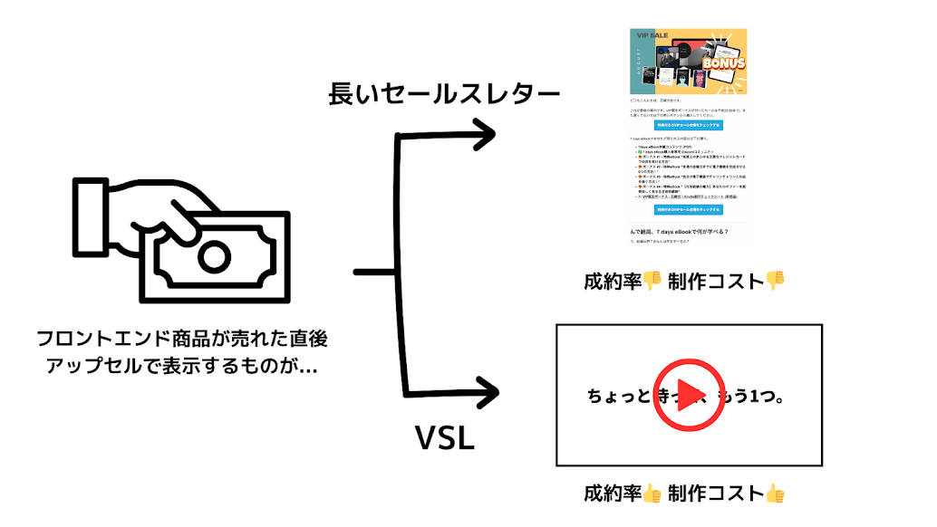 アップセル商品をオファーしない理由がないのと同様、VSLを作らない理由も存在しないのです。だってやればほぼ確実に売上は伸びるのですから。