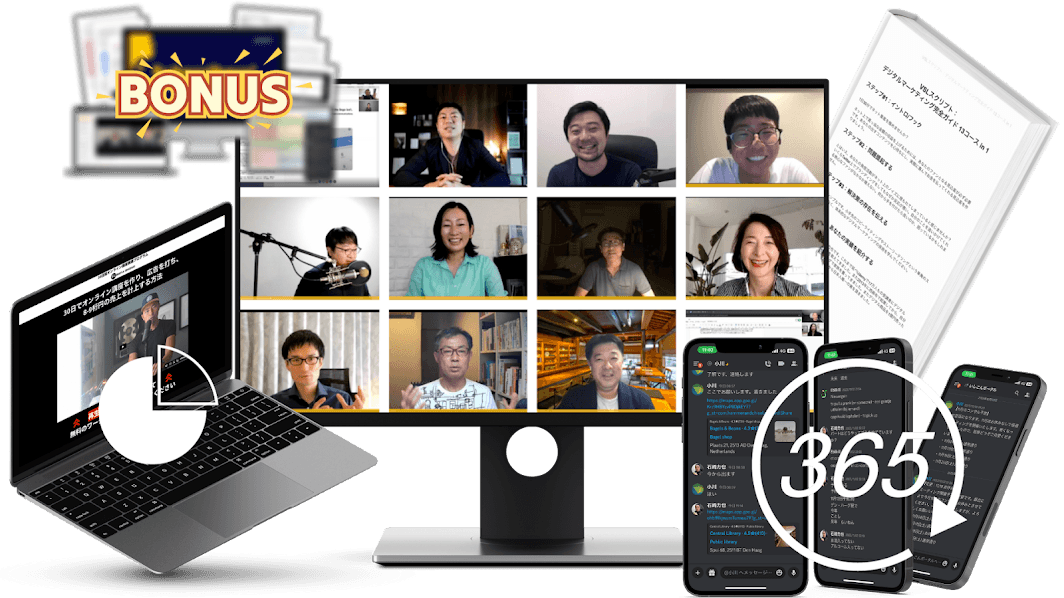 もちろんあなたは僕たちが新しく作る将来の広告クリエイティブ・セールスファネル・オーガニックコンテンツにもアクセスできます。それらの関連や意図について個別コンサルティングの時間に確認していただくことも可能です。僕たちは包み隠さず、全ての結果をお伝えします。