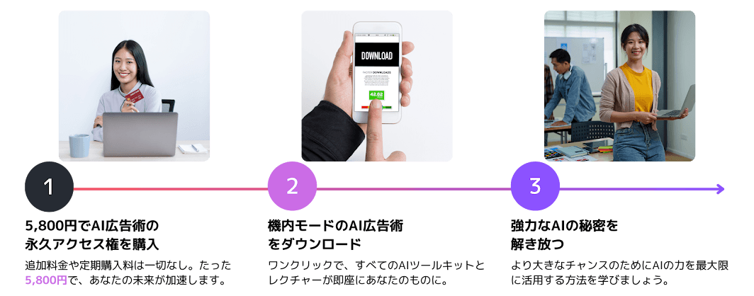 現在の特別価格は期間限定です。この破格の価格でAI広告術を手に入れられる機会は、近いうちに終了します。AIの進化は急速で、今がスキル習得の最適なタイミングです。
